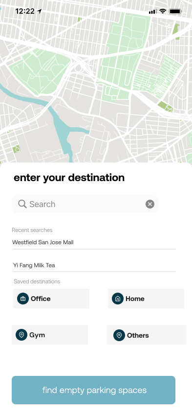 Direct user to the closest empty parking spot according to their chosen destination